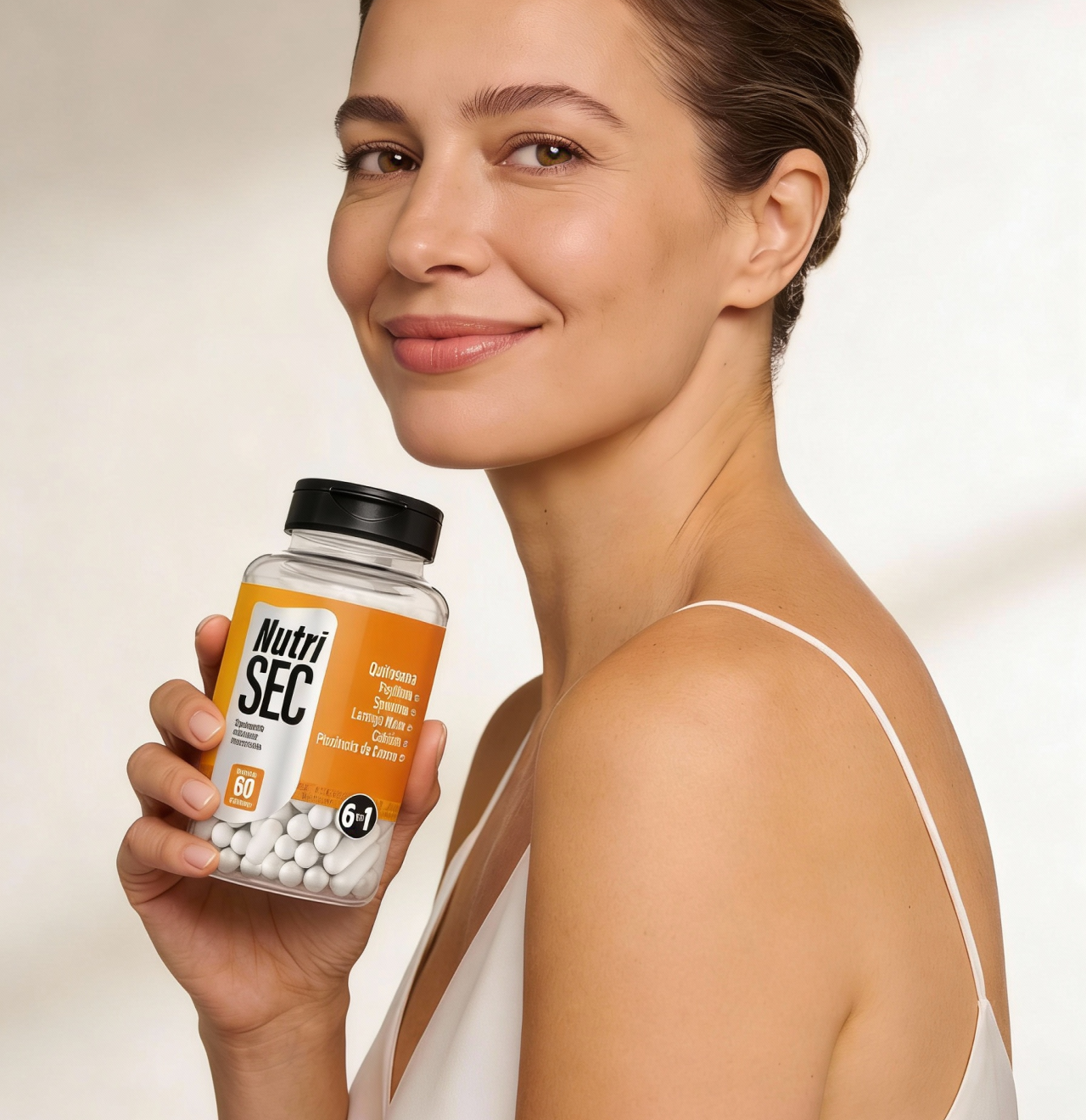 NutriSec combina quitosana, psyllium, spirulina e ativos funcionais para apoiar o equilíbrio do organismo, ajudando no controle do apetite, no funcionamento intestinal e na rotina de bem-estar no dia a dia.